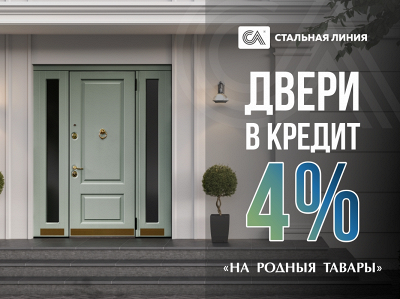 Покупайте входные двери «Стальная линия» на выгодных условиях с кредитом «На родныя тавары» от Беларусбанка. Отличные условия для покупки: фиксированная ставка 4% годовых и срок кредита до 3-х лет. Кредит распространяется на все входные двери: готовые решения из каталога и модели по индивидуальному заказу.