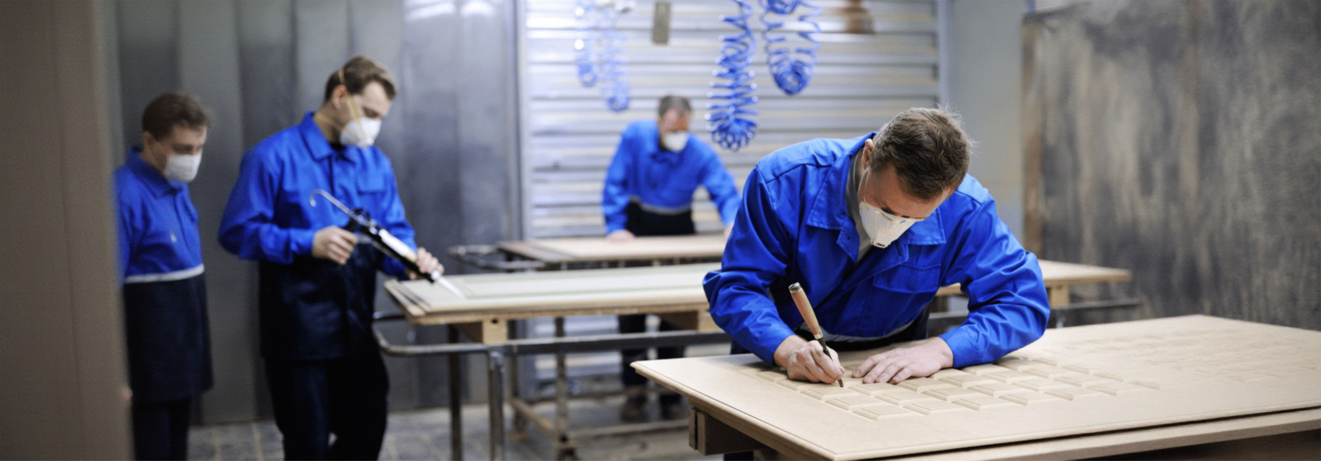 Мы постоянно разрабатываем и внедряем новые технологии в производство дверей. Каждый сотрудник вносит свой вклад в процесс непрерывных улучшений.