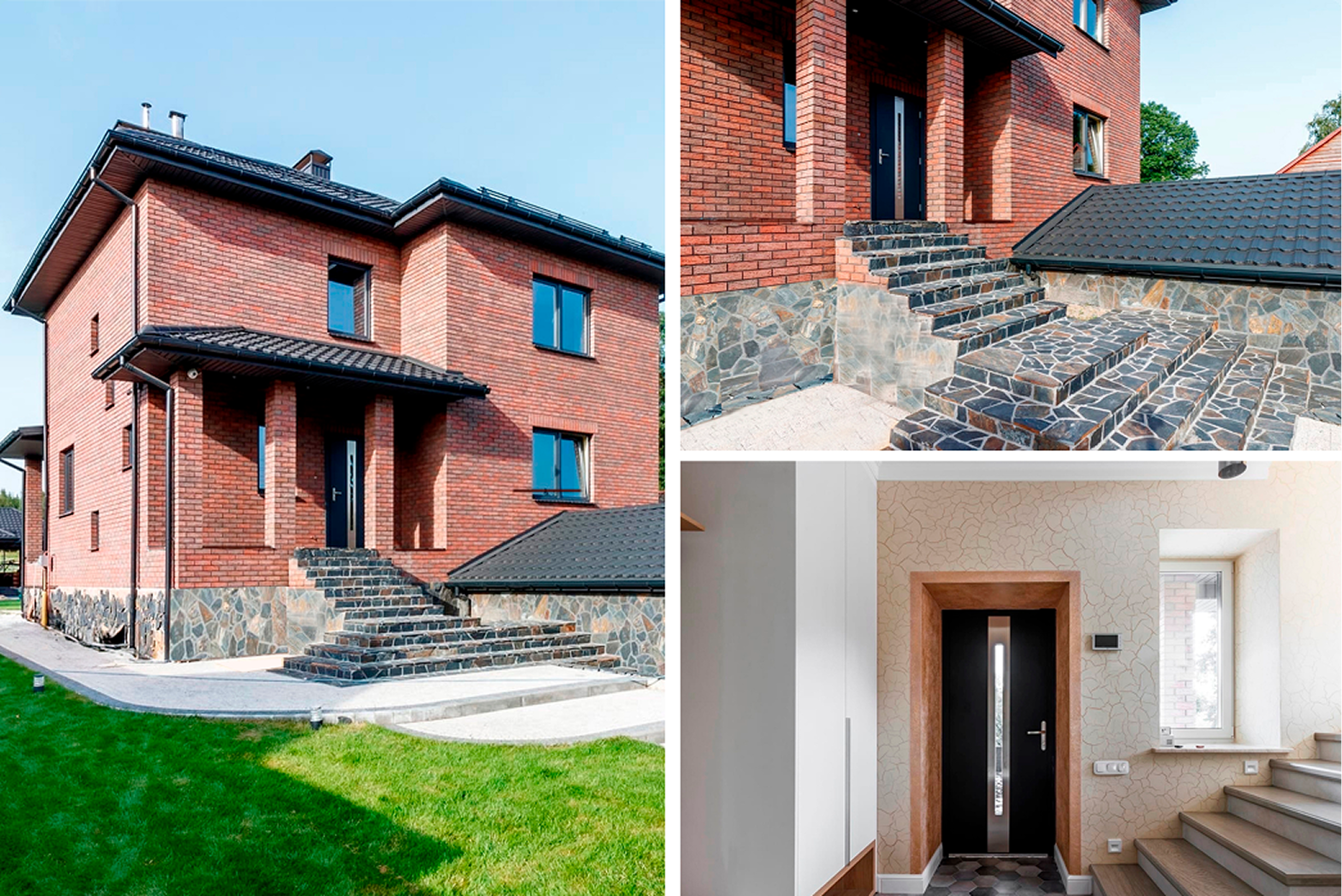 Дополнительные декоративные элементы: ручки-стучала, фурнитура, цифры, отбойник и почтовый ящик добавят акцент для входной двери и помогут создать единый гармоничный стиль входной группы.